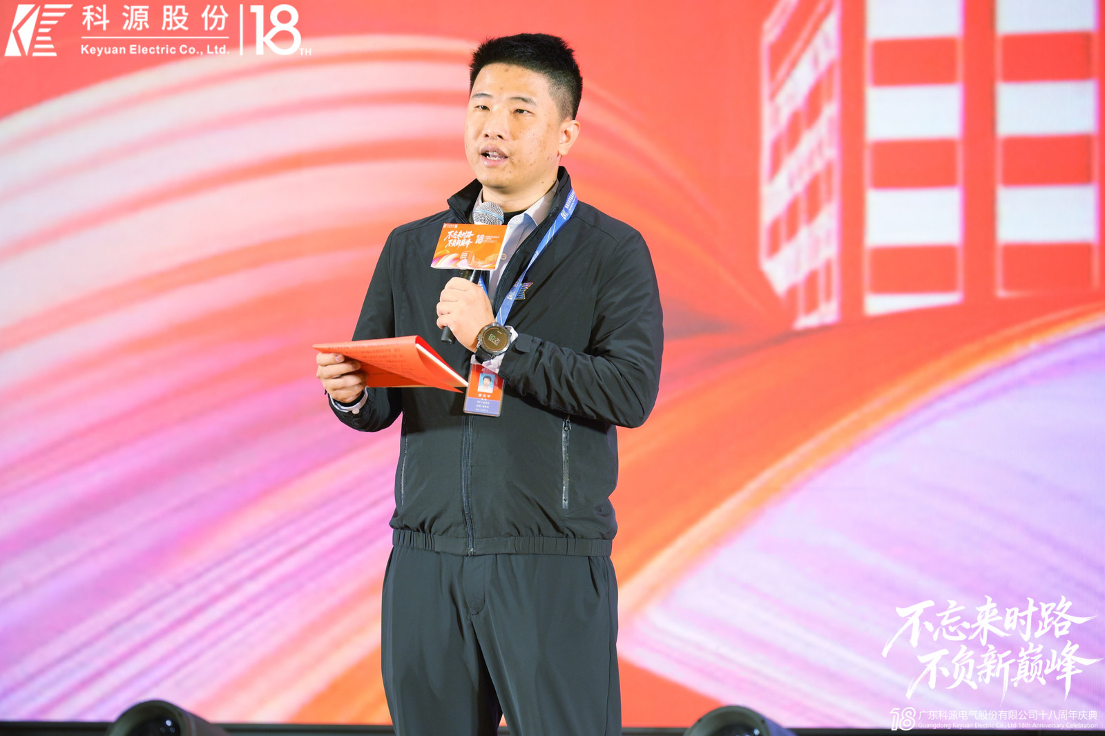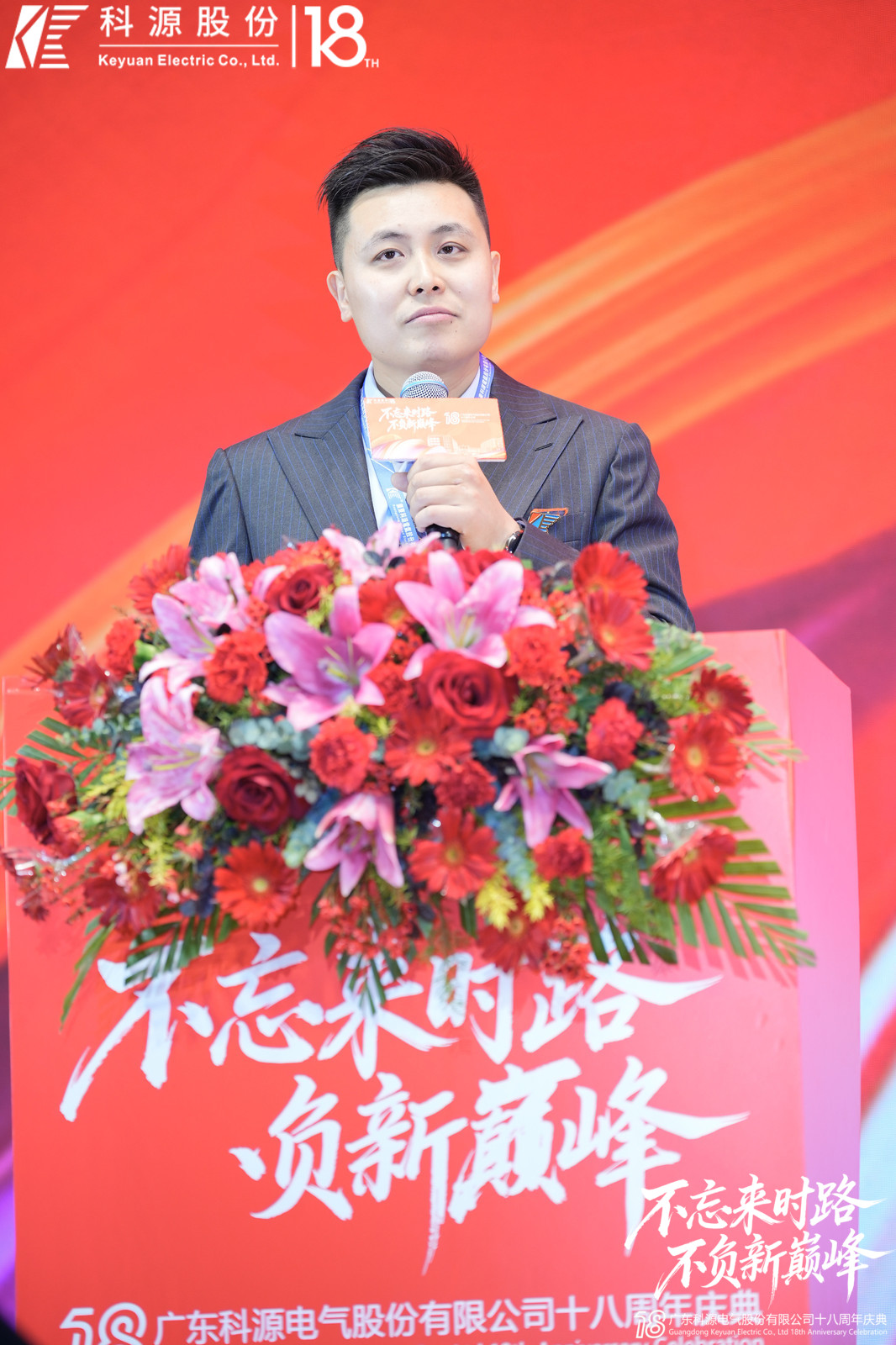 庆典伊始,科源电气总经理戚子轩发表了开场致辞,分别用“求真”、“务实”、“谦逊坦诚,透明独立”、“成为参天大树”四个关键词对公司十八周年作了总结,他表示,18周年对于科源电气是调整自身心态、接受内外部变化、找到属于科源电气发展方向的关键一年。未来的科源必将不断突破,成长为更加健康、更具备行业影响力的参天大树!
