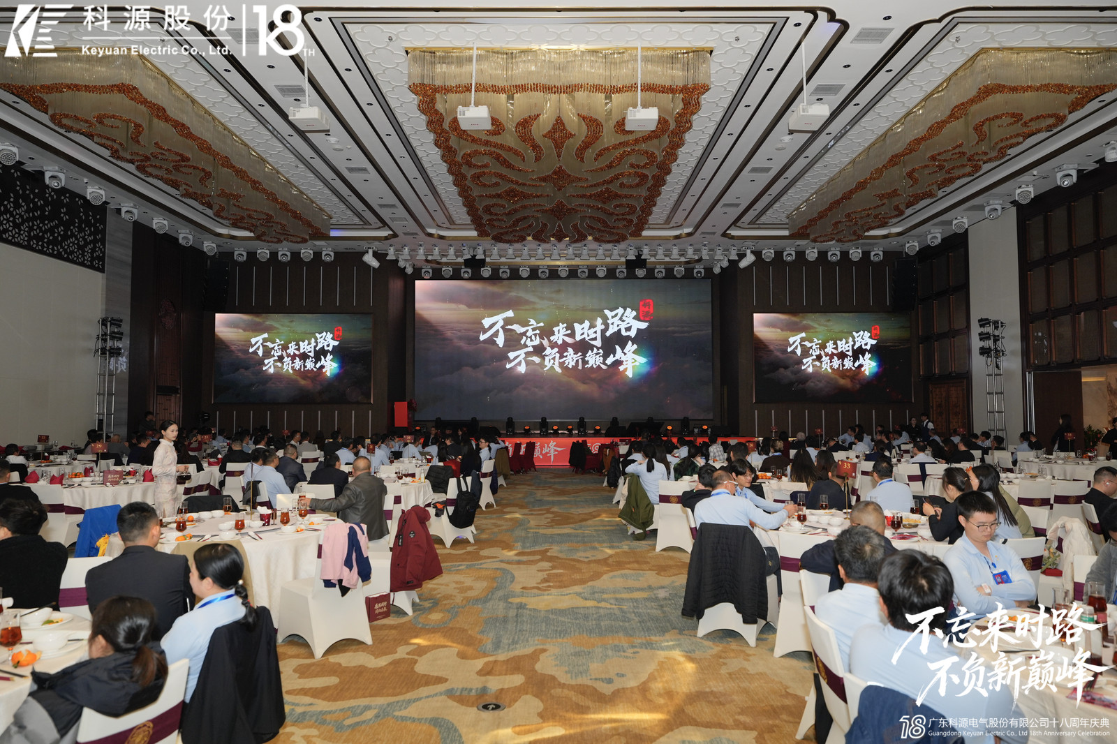 12月31日,广东科源电气股份有限公司十八周年庆典圆满举办!本次活动以“不忘来时路,不负新巅峰”为主题,分为“十八周年庆典”与“宴会互动”两大部分进行。科源电气全体员工齐聚一堂共襄盛会,共同回顾过去十八年的深厚与壮阔、分享辉煌成果、展望美好蓝图、欣赏纷呈节目,把舵定向,擘画未来。
